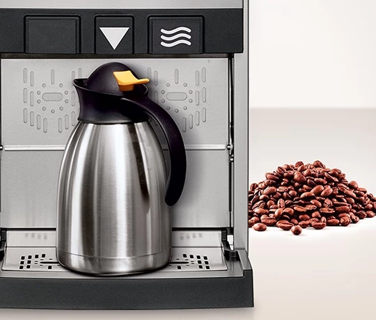 Das übersichtliche, LED-beleuchtete Menü, die automatische Entkalkungsanzeige und das Reinigungsprogramm mit Spülfunktion machen diese Kaffeelösung besonders benutzerfreundlich. Durch die verschließbare Fronttür ist sie auch im SB-Bereich ideal einsetzbar.