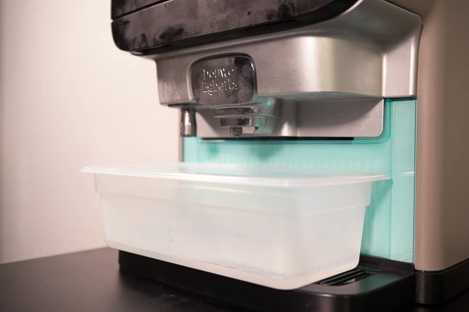 Sobald Sie die Spülschale platziert haben, drücken Sie die Taste „Enter“. Die Maschine beginnt die Spülung. Dies dauert maximal 5 Minuten.
